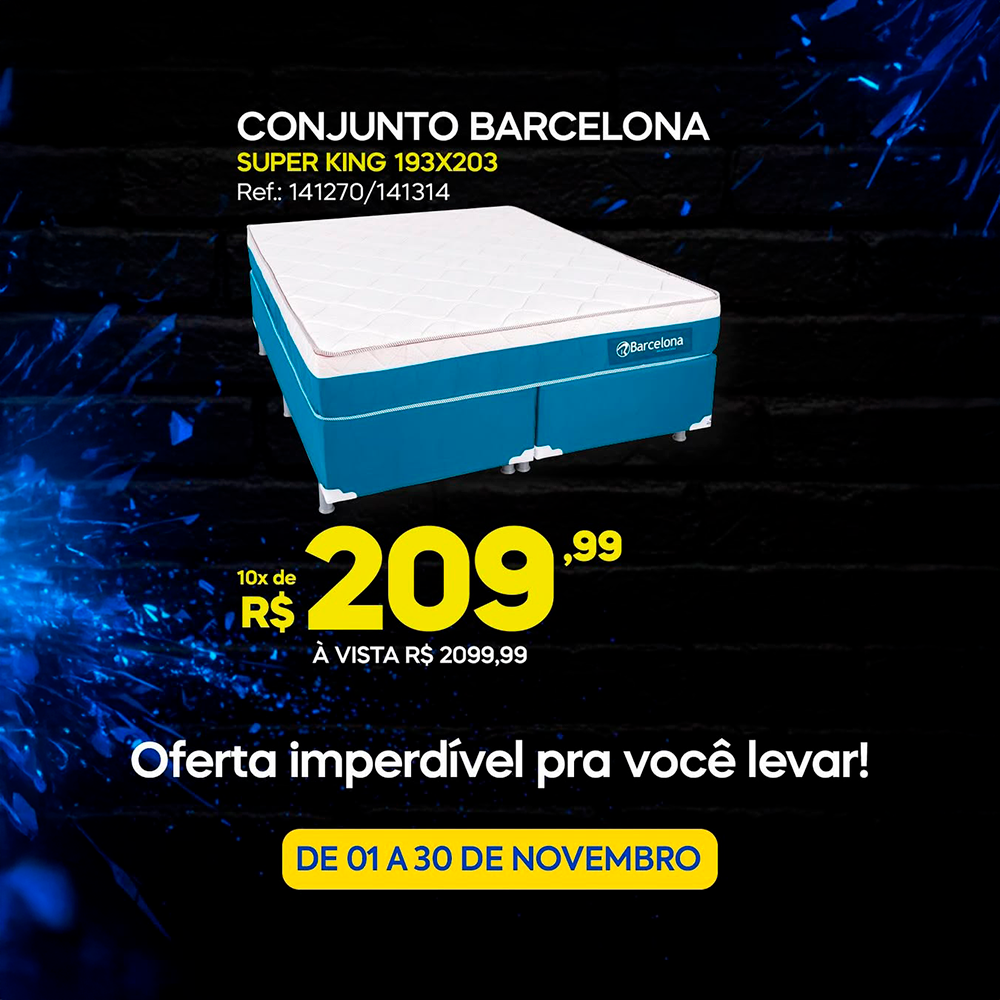 Exemplo: o Conjunto Barcelona por 10x de R$ 209,99 sem juros.